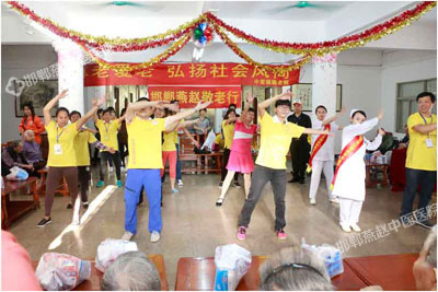 本次慰问活动在志愿者服务队扇子舞中开幕,邯郸燕赵中医医院的文艺队也相继表演了“中国功夫、二十四式太极和暖暖的幸福”节目,作为本次活动的倡导者,更是献出了“急流勇退、共缘中国梦、跳到北京”等节目,慰问队伍的热情瞬间点燃了敬老院的老人们,有的坐在轮椅上即兴献歌,也有的迈着龙钟步伐与志愿者共舞。参加节目有小到几岁懵懂的小朋友,大到耄耋之年的老人,活动热情高涨,大家无不为本次慰问活动叫好,中堂敬老院副院长对活动参与人员再三表示感谢,认为本次活动为老人们奉上了一场开心、健康饕餮盛宴。